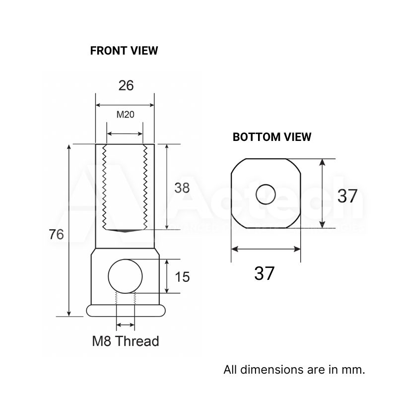 Our Patented Ferrules include an extra M8 thread at the cross hole which allow for easy integration of the base of the ferrule to Ferrule Cross Chairs!