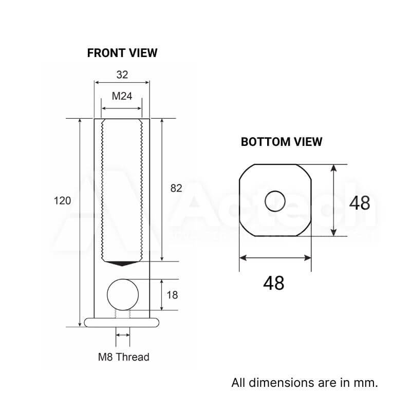 Our Patented Ferrules include an extra M8 thread at the cross hole which allow for easy integration of the base of the ferrule to Ferrule Cross Chairs!