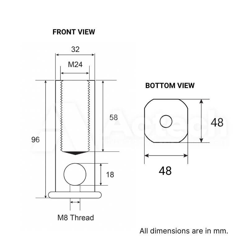 Our Patented Ferrules include an extra M8 thread at the cross hole which allow for easy integration of the base of the ferrule to Ferrule Cross Chairs!