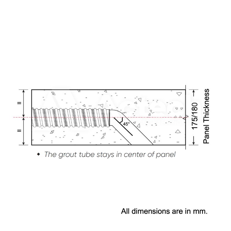 These 45 Degree Grout Tube Elbows also come in a variety of sizes – each size reflect the panel thickness so that the round port of the grout tube would be aligned to the center of the panel.